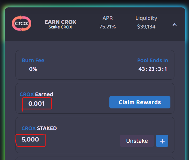 You will start earning CROX rewards as long as your staked tokens are in the pool.