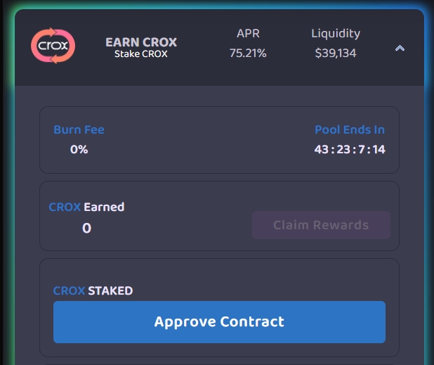 Option #2 A. How to stake CROX on BNB Chain(BSC) ? 1. Go to BSC Croxswap Pools β https://croxswap.com/pools/nextgen 2. Select CROX Pool