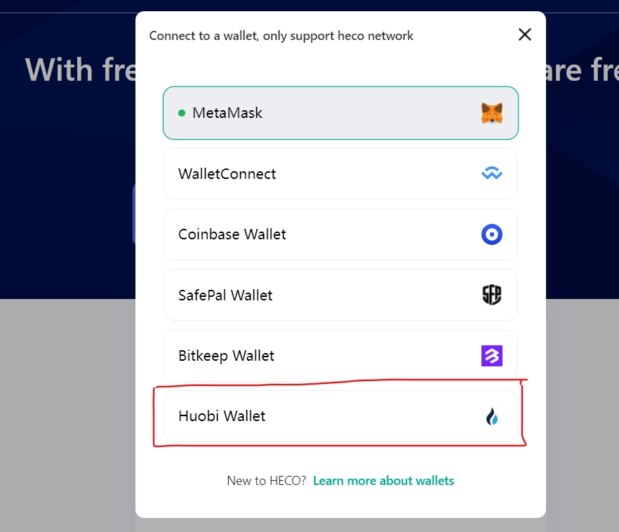 B. How to swap CROX on HECO Chain? 1. Go to MDEX Exchangefrom Huobi Wallet Dapp browser 2. Connect to Huobi Wallet