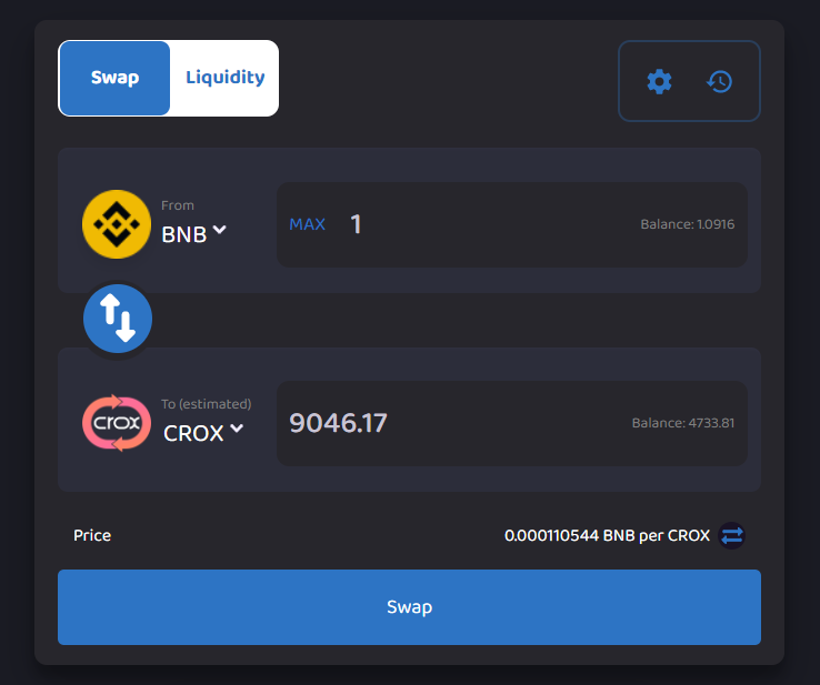 Option #1 A. How to swap CROX on BNB Chain(BSC)? 1. Go to https://exchange.croxswap.com 2. Connect using Huobi wallet